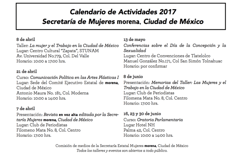 Calendario de Actividades 2017 2 enero, 2017 mujeresmorenaciudaddemexico Agenda, Conferencias, Eventos, Secretaría Deja un comentario Comparte esto: Haz clic para compartir en WhatsApp (Se abre en una ventana nueva) WhatsApp Haz clic para compartir en Facebook (Se abre en una ventana nueva) Facebook Haz clic para compartir en X (Se abre en una ventana nueva) X Haz clic para imprimir (Se abre en una ventana nueva) Imprimir